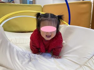 お部屋の中でも色々な形で身体を動かしている0歳児さん!