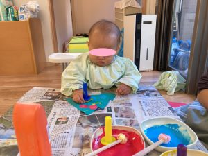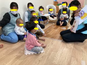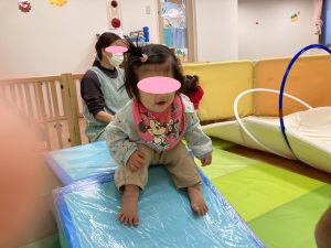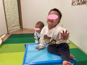お部屋の中でも色々な形で身体を動かしている0歳児さん!